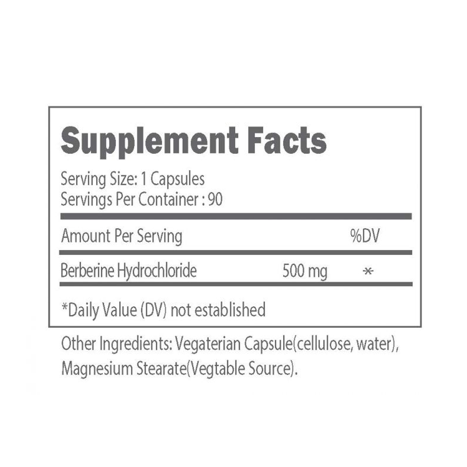 Each capsule contains 500 milligrams of Berberine HCl (the form that was used in published peer reviewed studies).