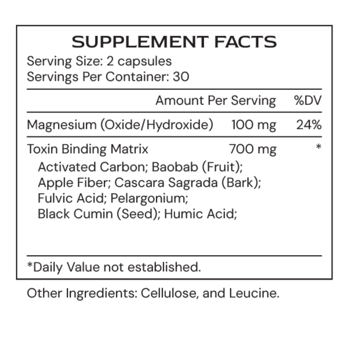 Binds and removes gene disrupting compounds from the GI system left by microbial die-off, environmental toxins, and a modern diet.