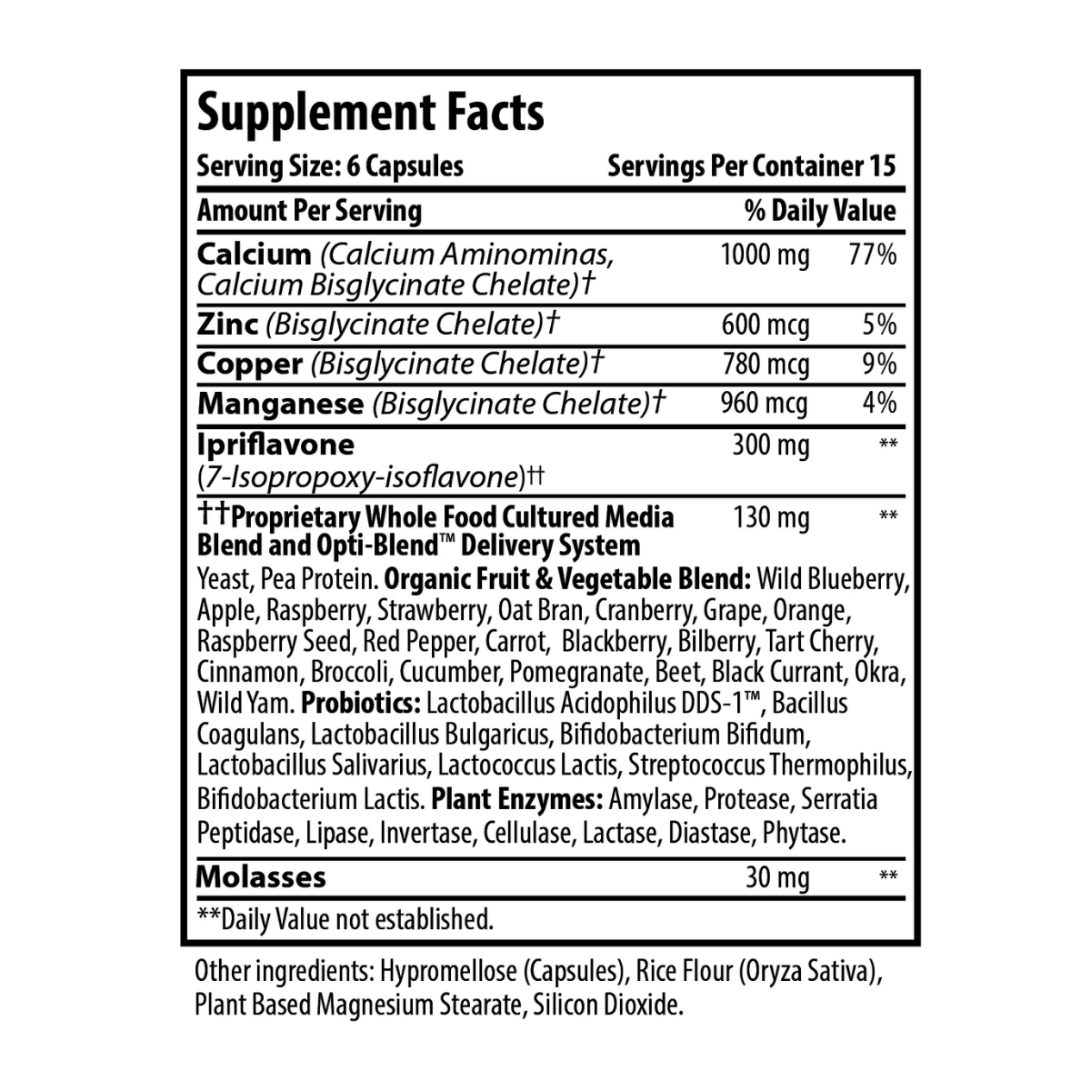 Optimal BonePlus Calcium is a bone-healthy blend of the most absorbable form of calcium, along with an all-natural ingredient called ipriflavone (OstivoneTM), which has been proven to promote bone formation and strength.